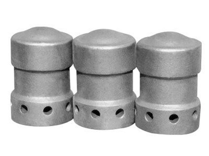 我公司生產(chǎn)的新型鐘罩式風帽,優(yōu)于蘑菇狀多孔風帽,蘑菇狀孔眼多,孔徑小,送風出孔角度與帽身為90°,90°布風在送風風壓波動時物料會通過風帽孔回吸進入風室,造成風室積渣,風帽通風不足,過熱損壞,風帽數(shù)量多,間距小易造成風帽間相互對吹,致使風帽頭部磨損嚴重損壞。它同時優(yōu)于7字型和T型風帽,其中7字型風帽為單孔,出口角度與帽身呈90°直角或15°、30°斜角,而T型風帽為雙孔或多孔,兩孔與帽身均呈一定角度。這兩種型號式風帽雖然孔徑大,但無法避免對吹磨損,風室積渣現(xiàn)象。