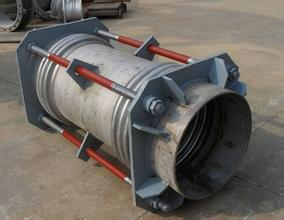 特點(diǎn):橫向大拉桿波紋管膨脹節(jié)由中間管所連接的兩個(gè)波紋管及拉桿、端板和球面與錐面墊圈等結(jié)構(gòu)件組成,主要吸收橫向位移,也可用于補(bǔ)償軸向、橫向、角向以及由這三種形式合成的任意方向的位移。推薦使用將復(fù)式拉桿型膨脹節(jié)安裝在呈90°的Z形管道的中間短管臂內(nèi)以補(bǔ)償兩端長(zhǎng)管線軸向位移。